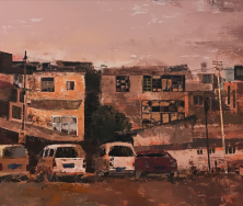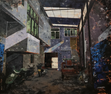 王冠在坐看云起中说:画面平稳,有气氛,严谨中略带诗意,“靠垫”的处理为画面的活泼增色不少,作品挂在咖啡厅、会议室等地方会有一种多重结构穿插的趣味感。