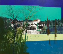 王冠在坐看云起中说:画面平稳,有气氛,严谨中略带诗意,“靠垫”的处理为画面的活泼增色不少,作品挂在咖啡厅、会议室等地方会有一种多重结构穿插的趣味感。