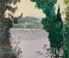 王冠在坐看云起中说:画面平稳,有气氛,严谨中略带诗意,“靠垫”的处理为画面的活泼增色不少,作品挂在咖啡厅、会议室等地方会有一种多重结构穿插的趣味感。